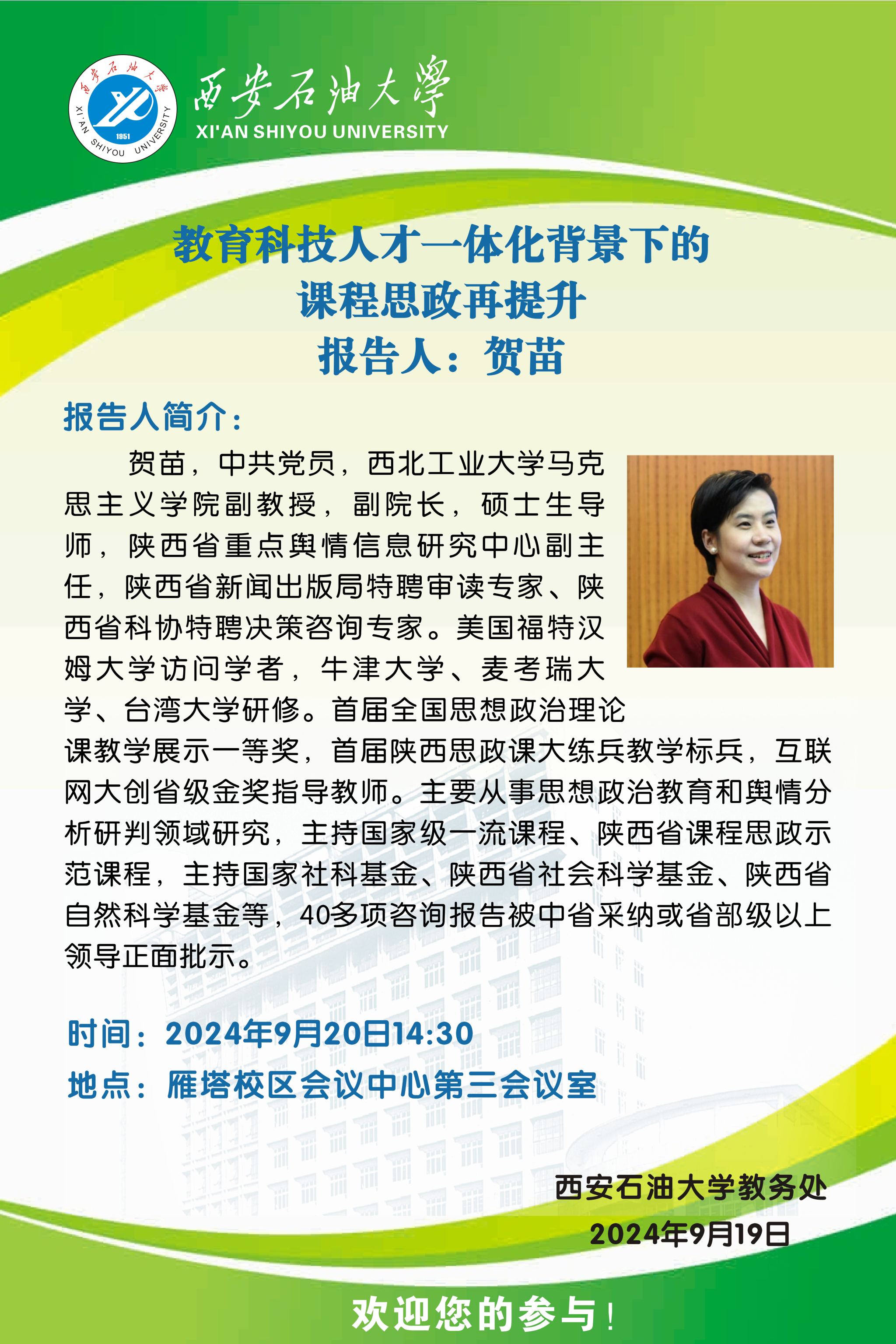 報告地點:雁塔校區(qū)會議中心第三會議室